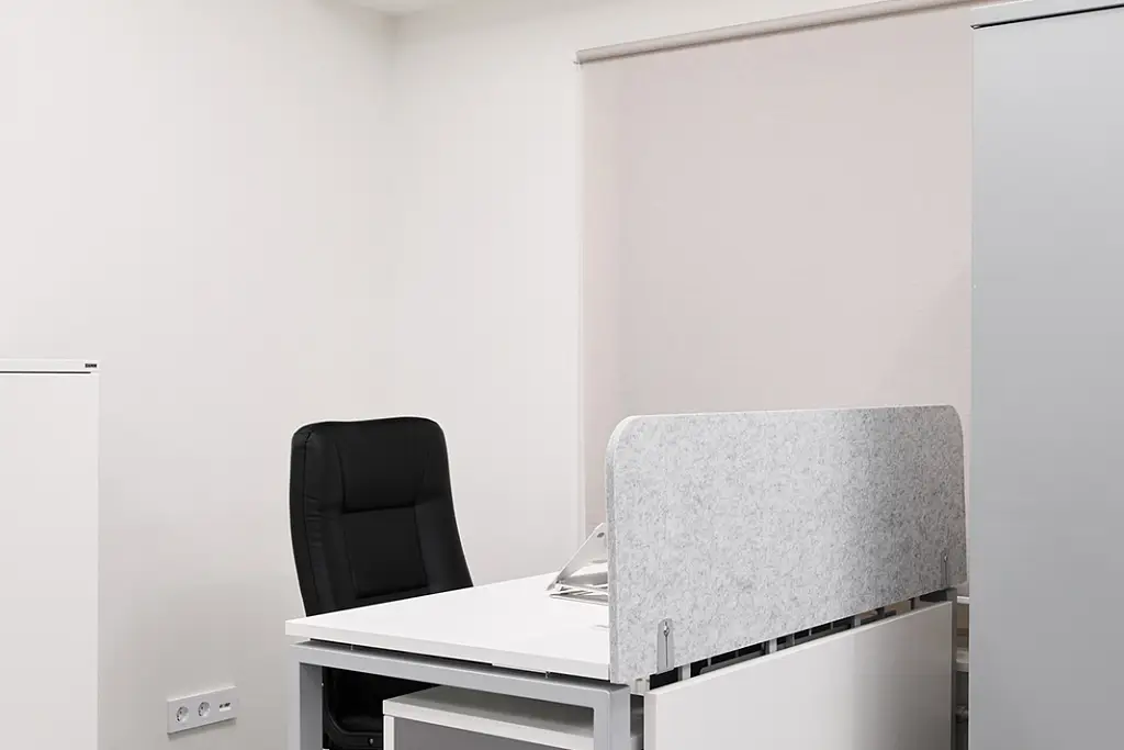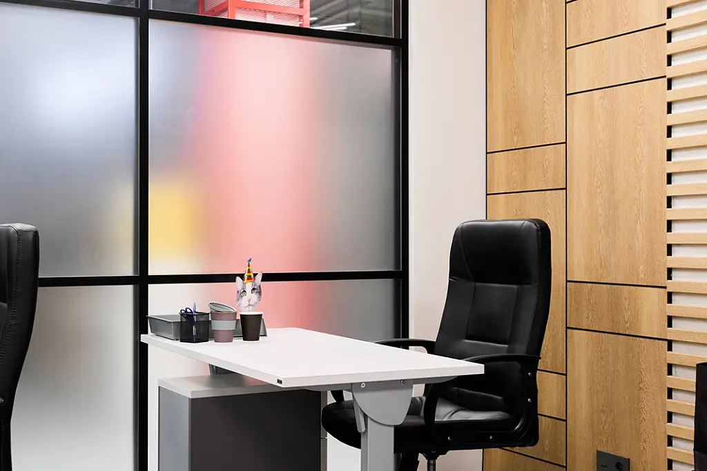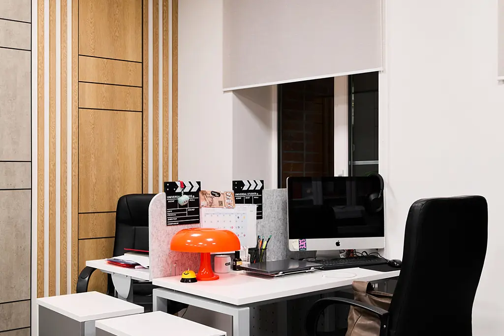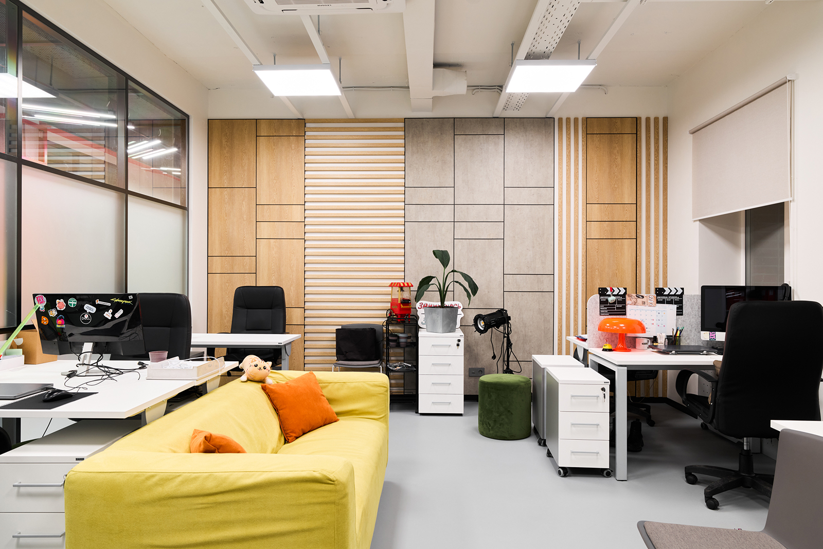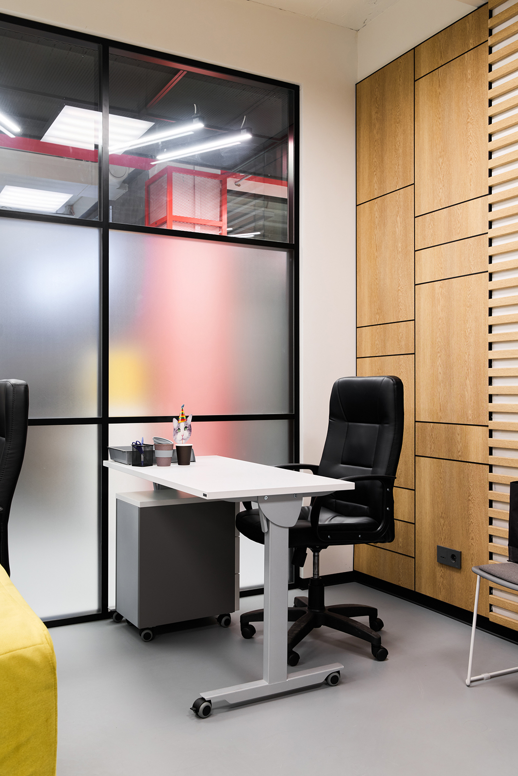 Кабинеты сотрудников выполнены в соответствии с дизайн-проектом помещения с точным расчетом расстояния между рабочими местами и расстановки мебели — тем самым мы обеспечили продуманную организацию и повышенный комфорт.