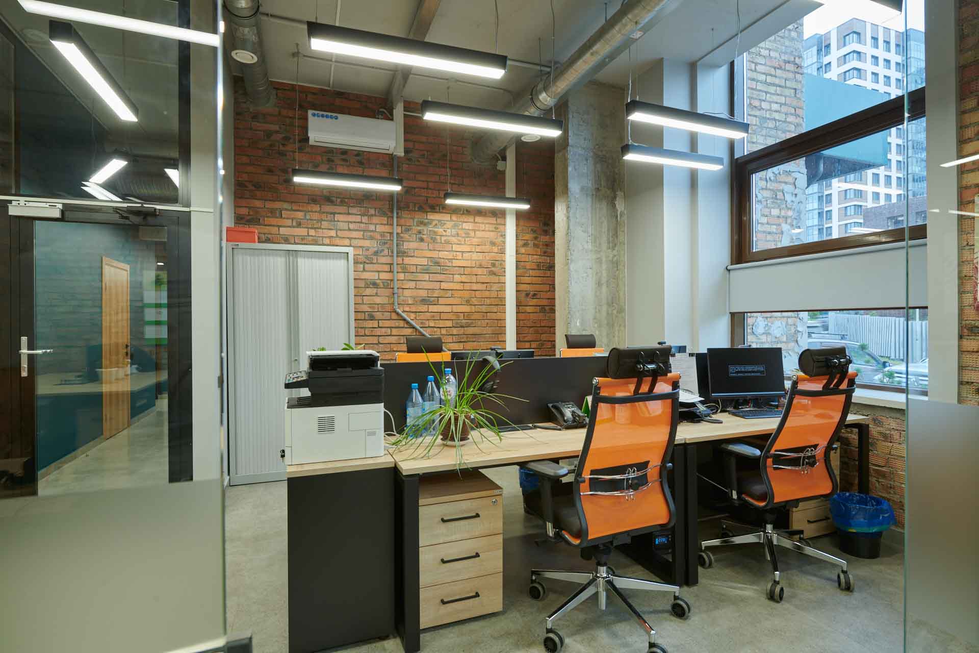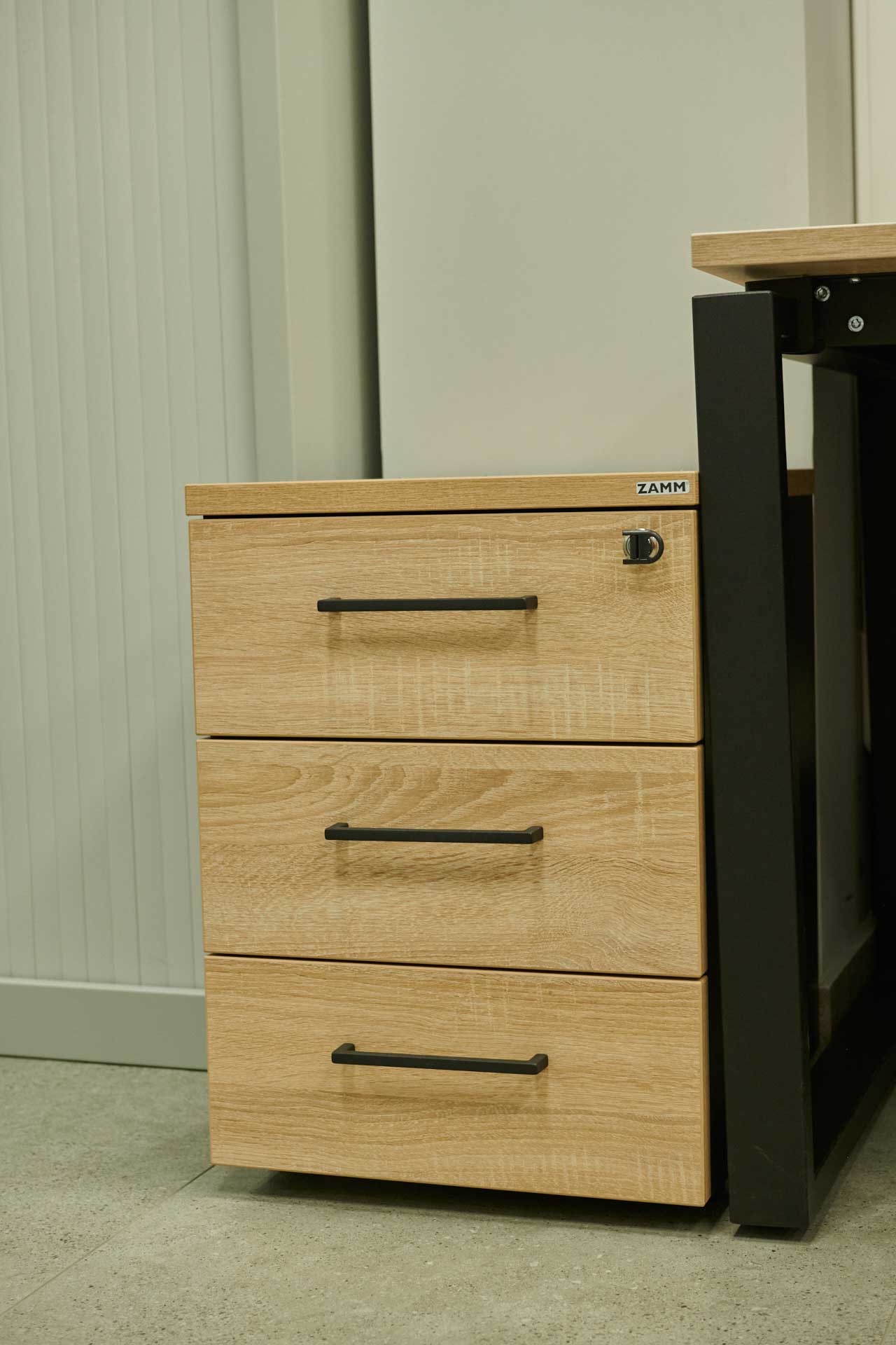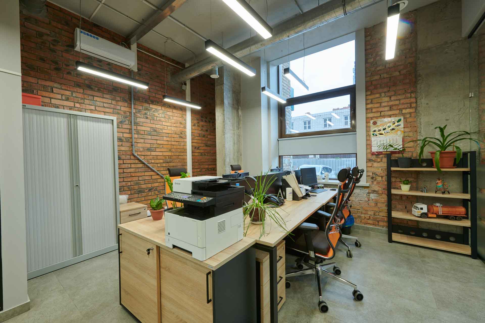 Интерьер в стиле лофт лизинговой компании «Дельта» в Красноярске выгодно дополнила мебель ZAMM. В проекте за основу взяты столы Зета ТР в оттенке Дуб Бардолино/Черный муар. К ним подобраны тумбы на 3 ящика, с центральным замком и регулируемыми опорами. Стеллажи на металлокаркасе и классические локеры с двумя полками позволяют структурировать работу и выполняют также стилевые функции. У нас вы всегда найдете мебель, которая будет идеально сочетаться между собой, помогая организовать полноценные рабочие места.