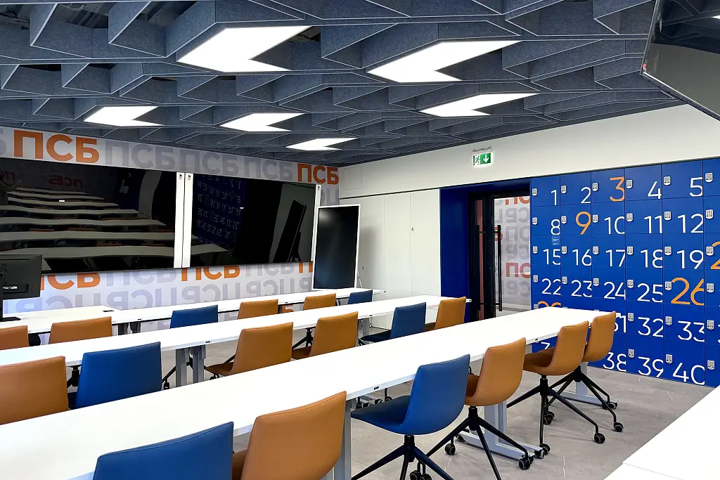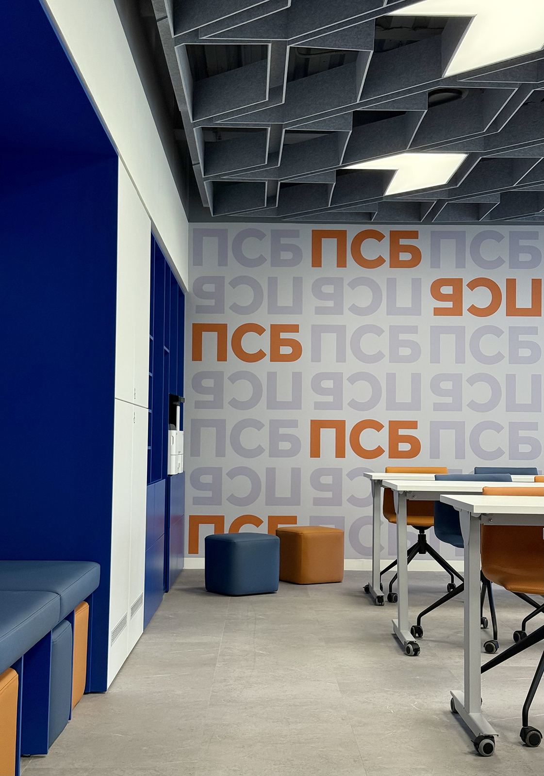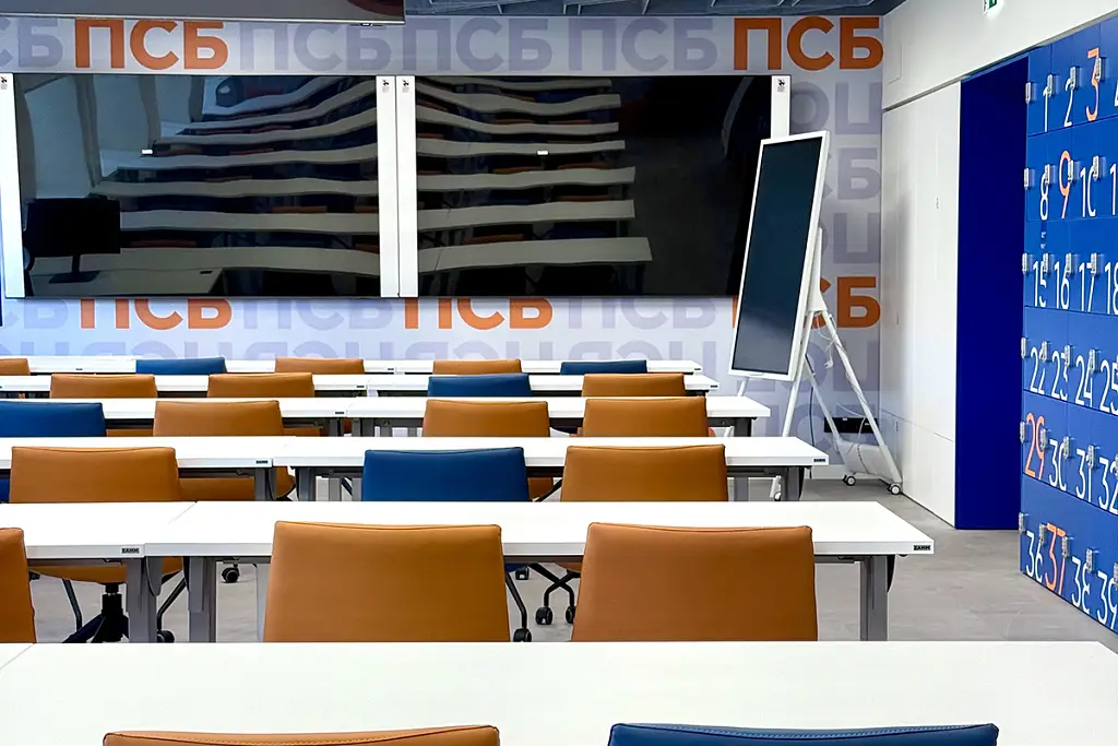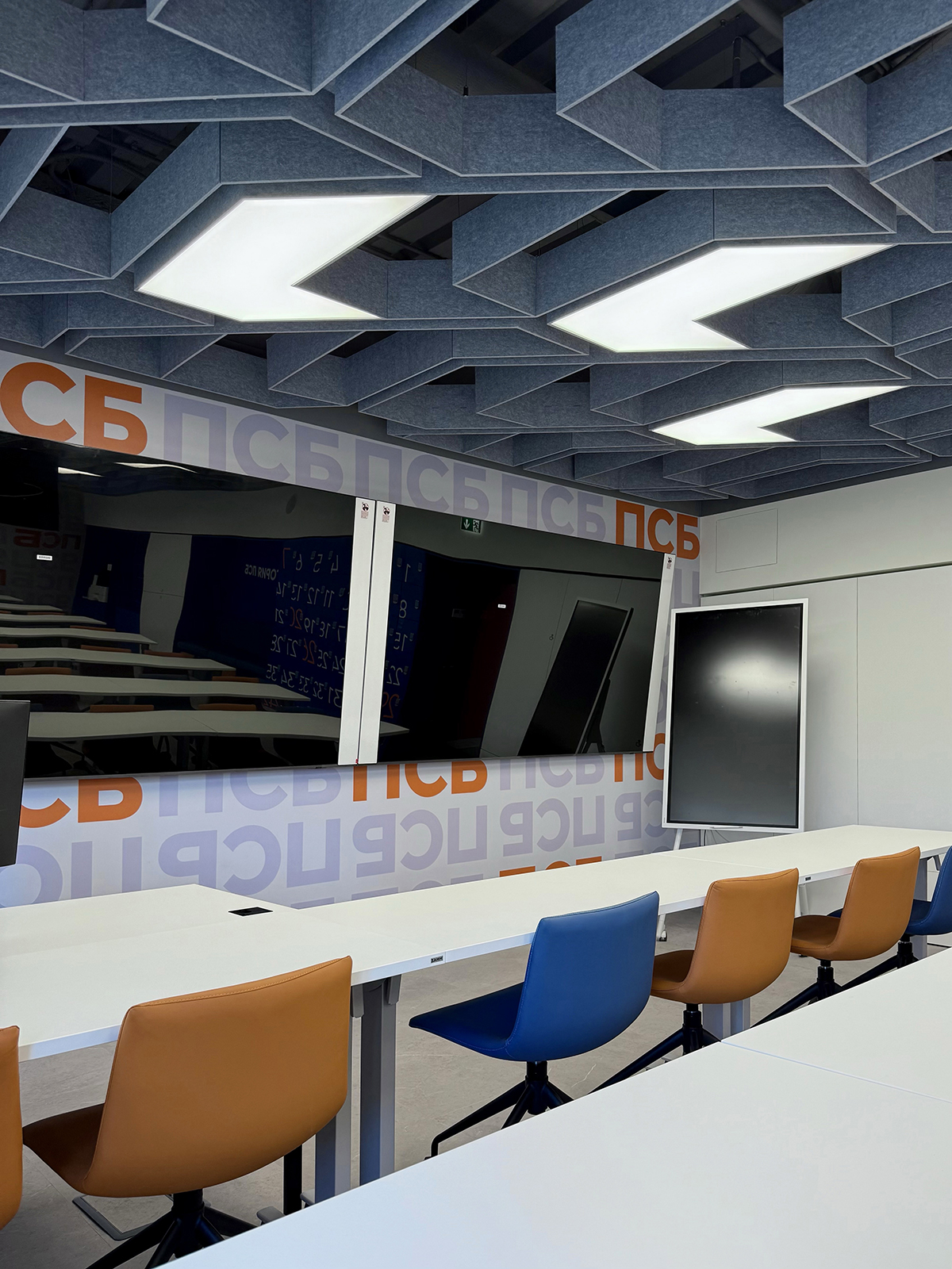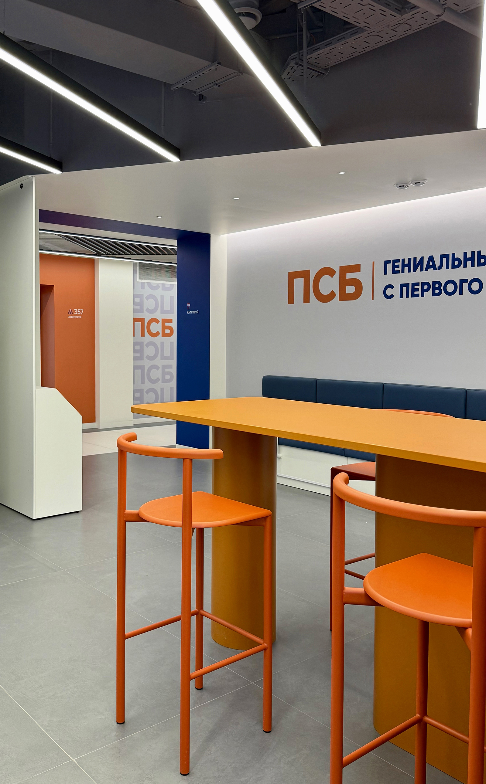 По проекту архитектурного бюро Т+Т Architects мы реализовали интерьер для кафедры ПСБ в Финансовом университете - современное образовательное пространство, сочетающее функциональность, комфорт и выразительный дизайн.