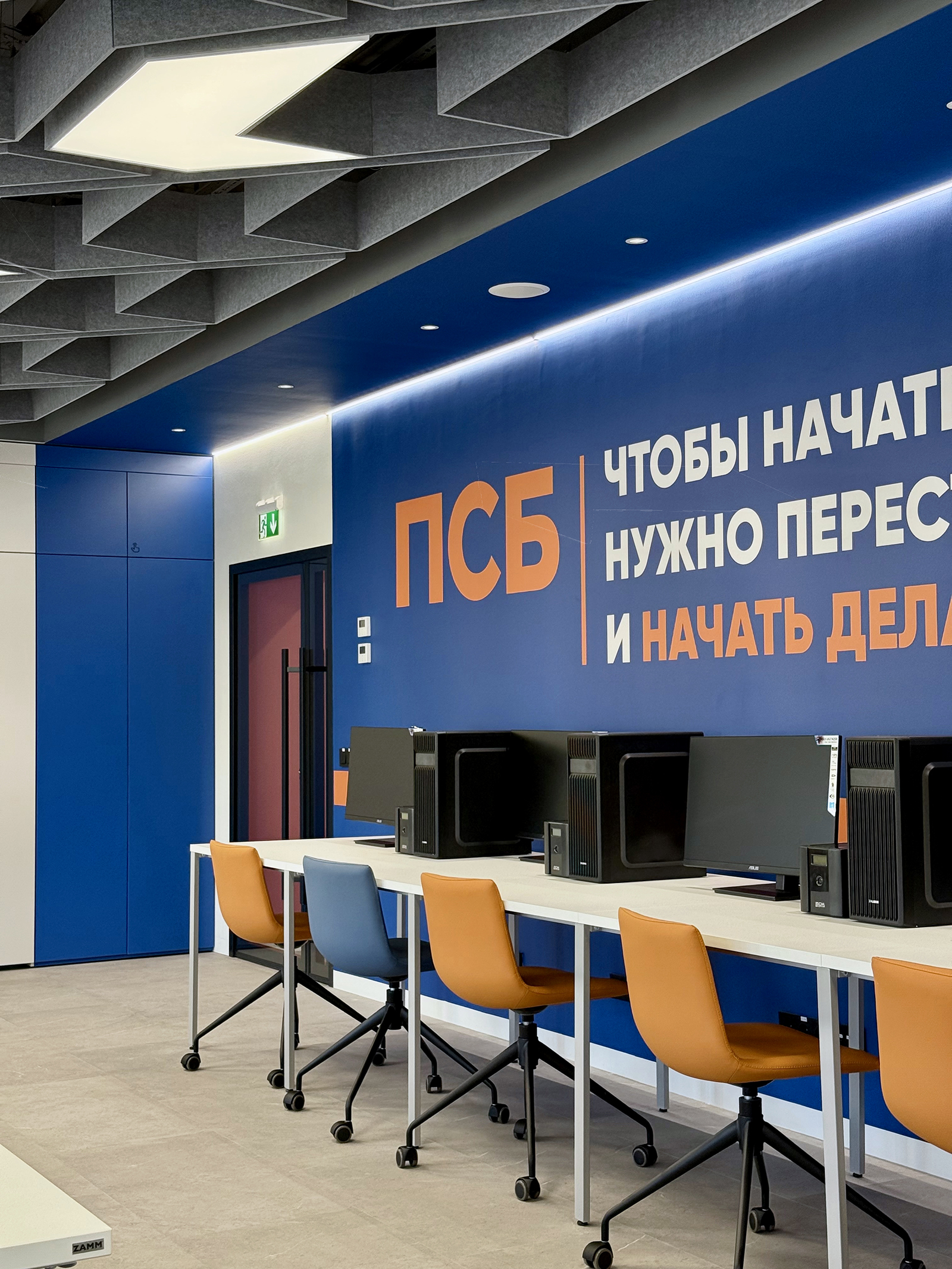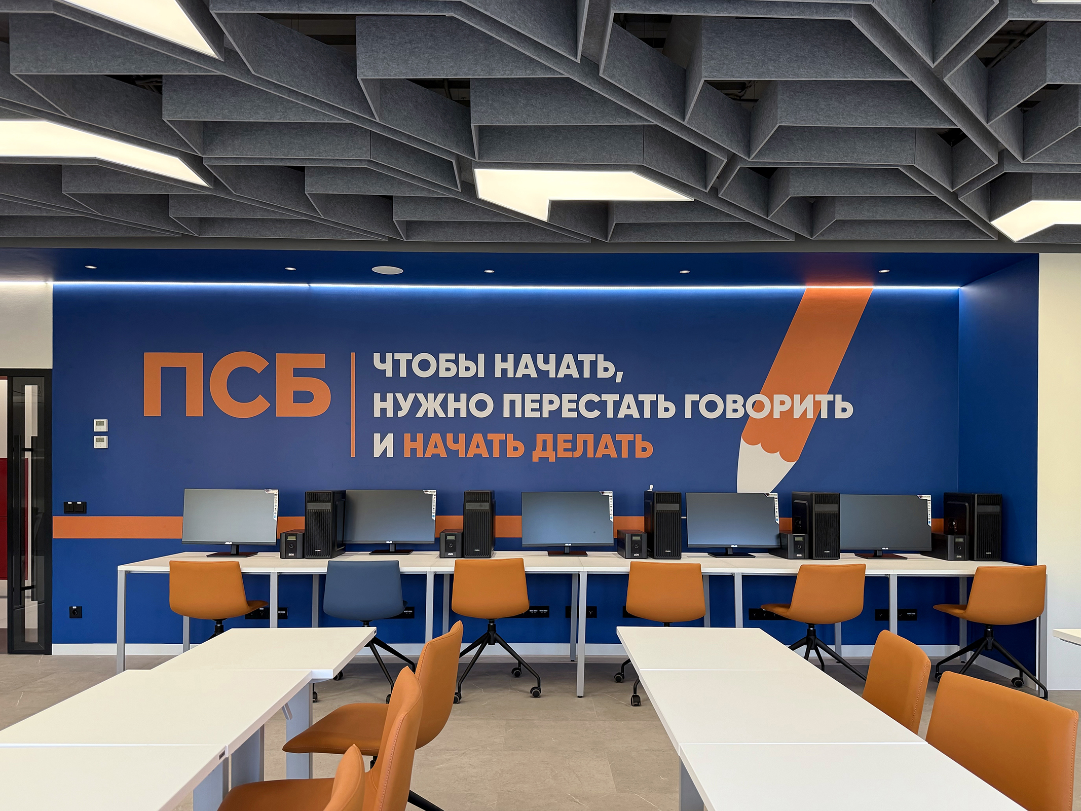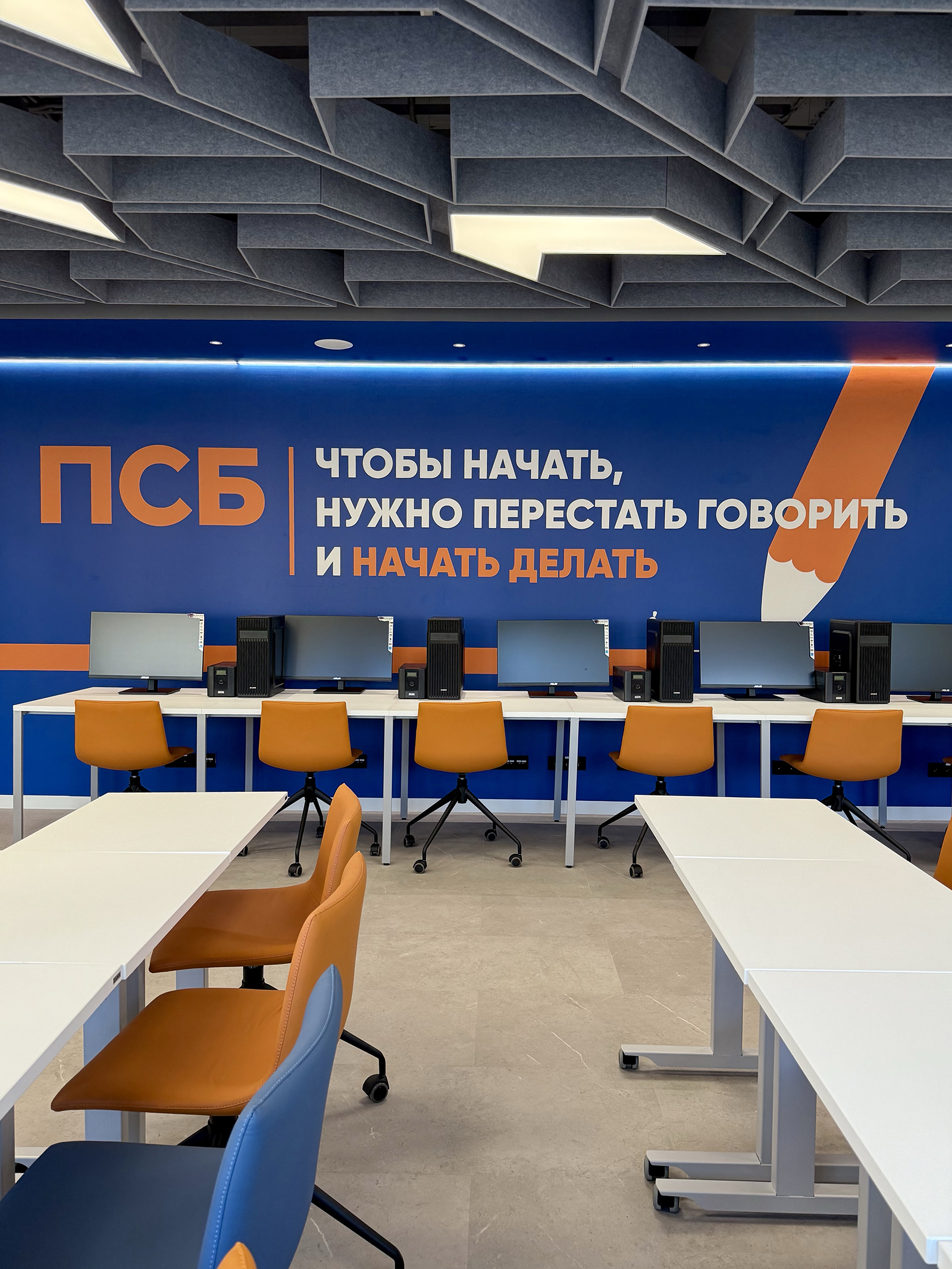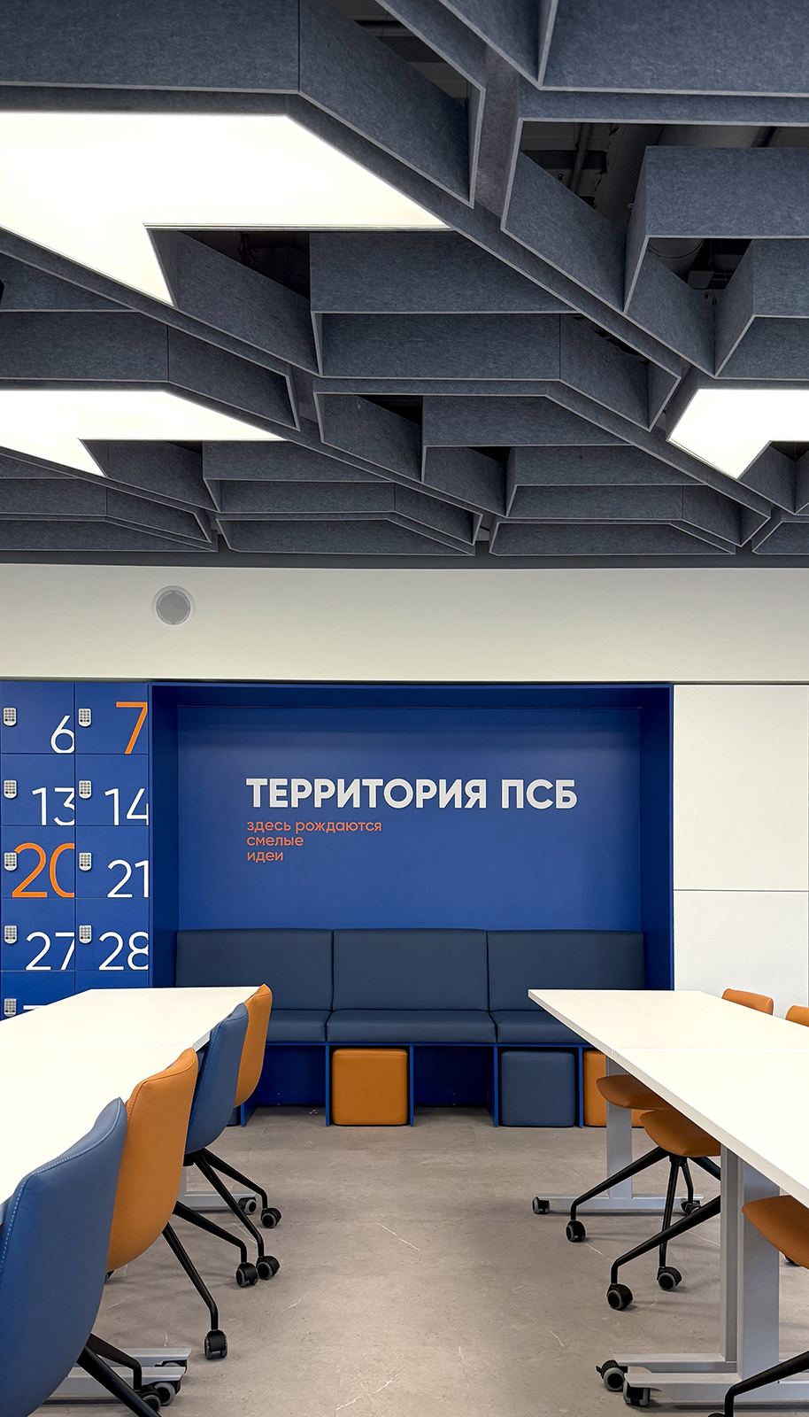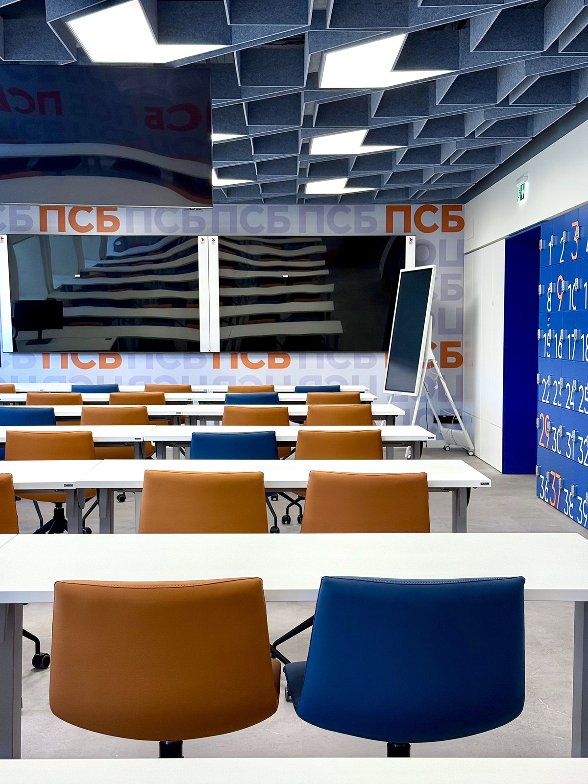 По проекту архитектурного бюро Т+Т Architects мы реализовали интерьер для кафедры ПСБ в Финансовом университете - современное образовательное пространство, сочетающее функциональность, комфорт и выразительный дизайн.