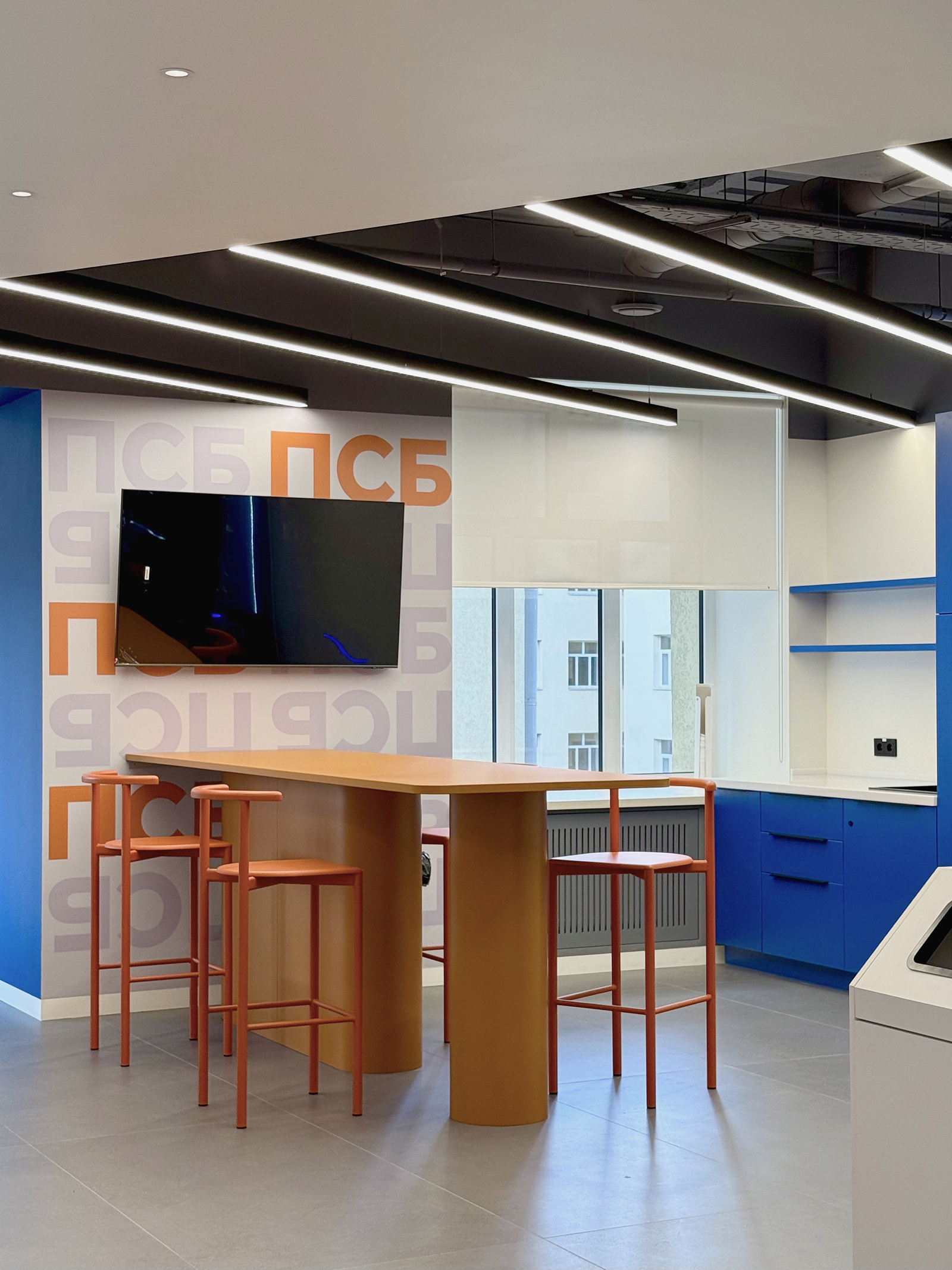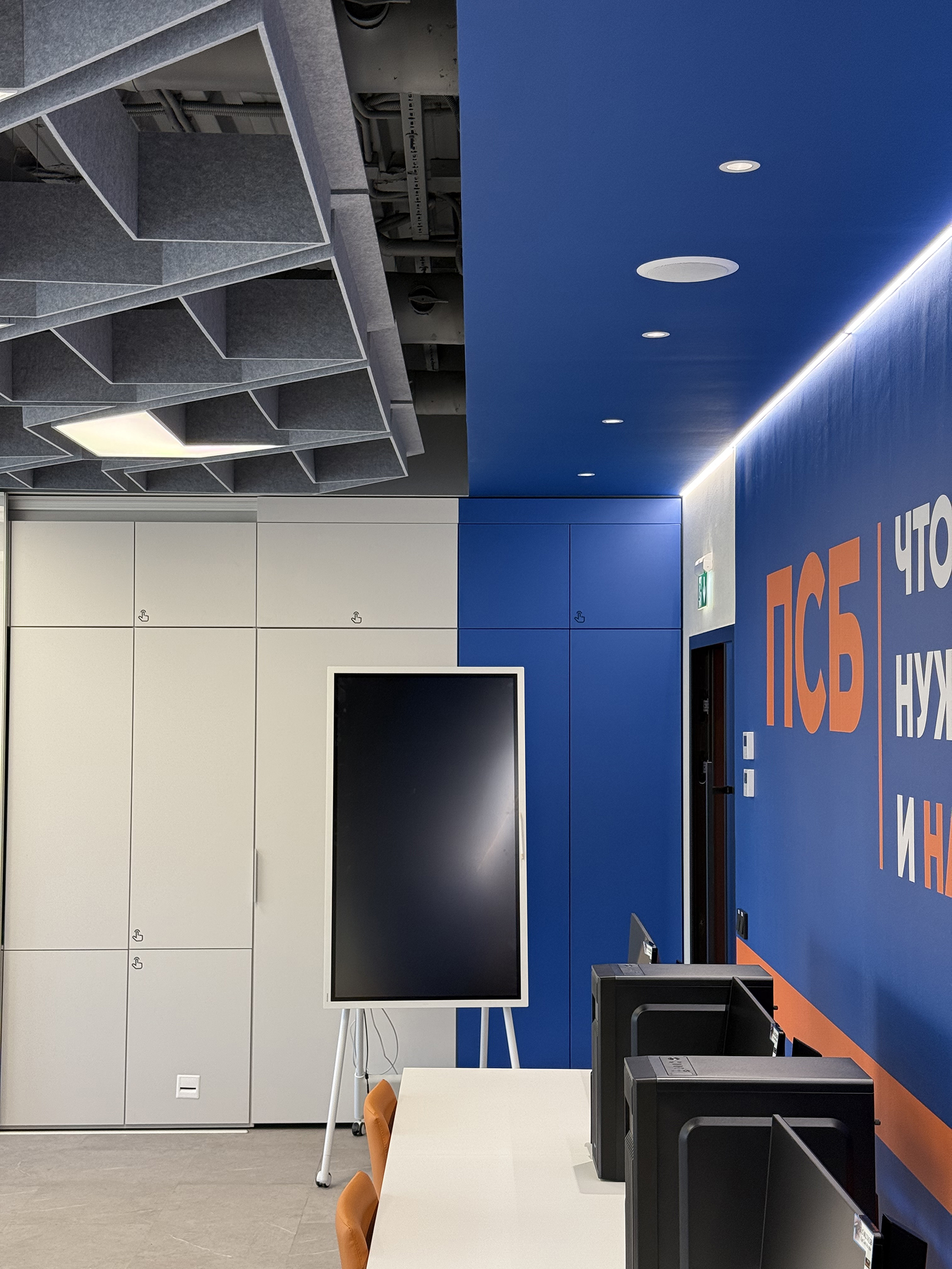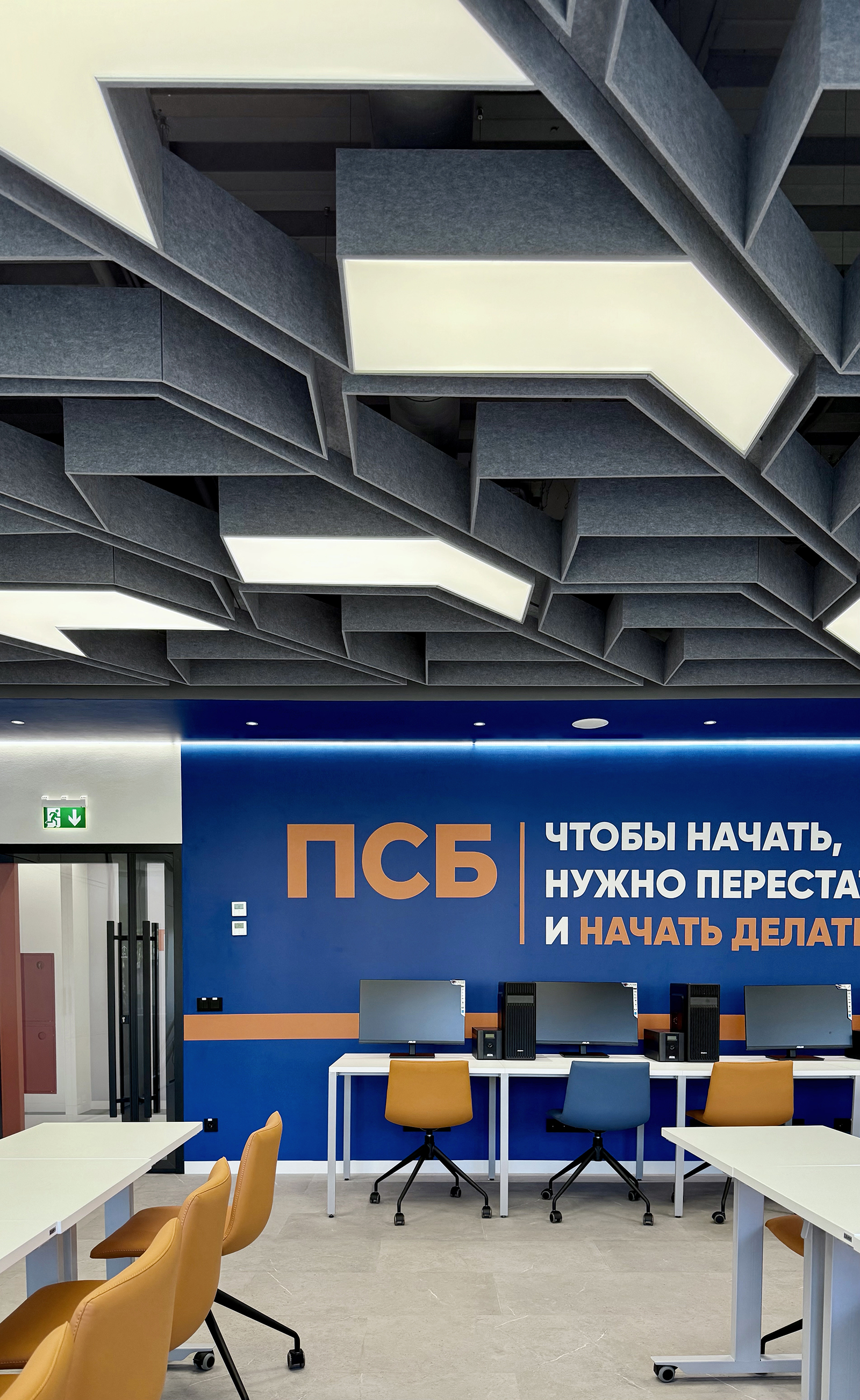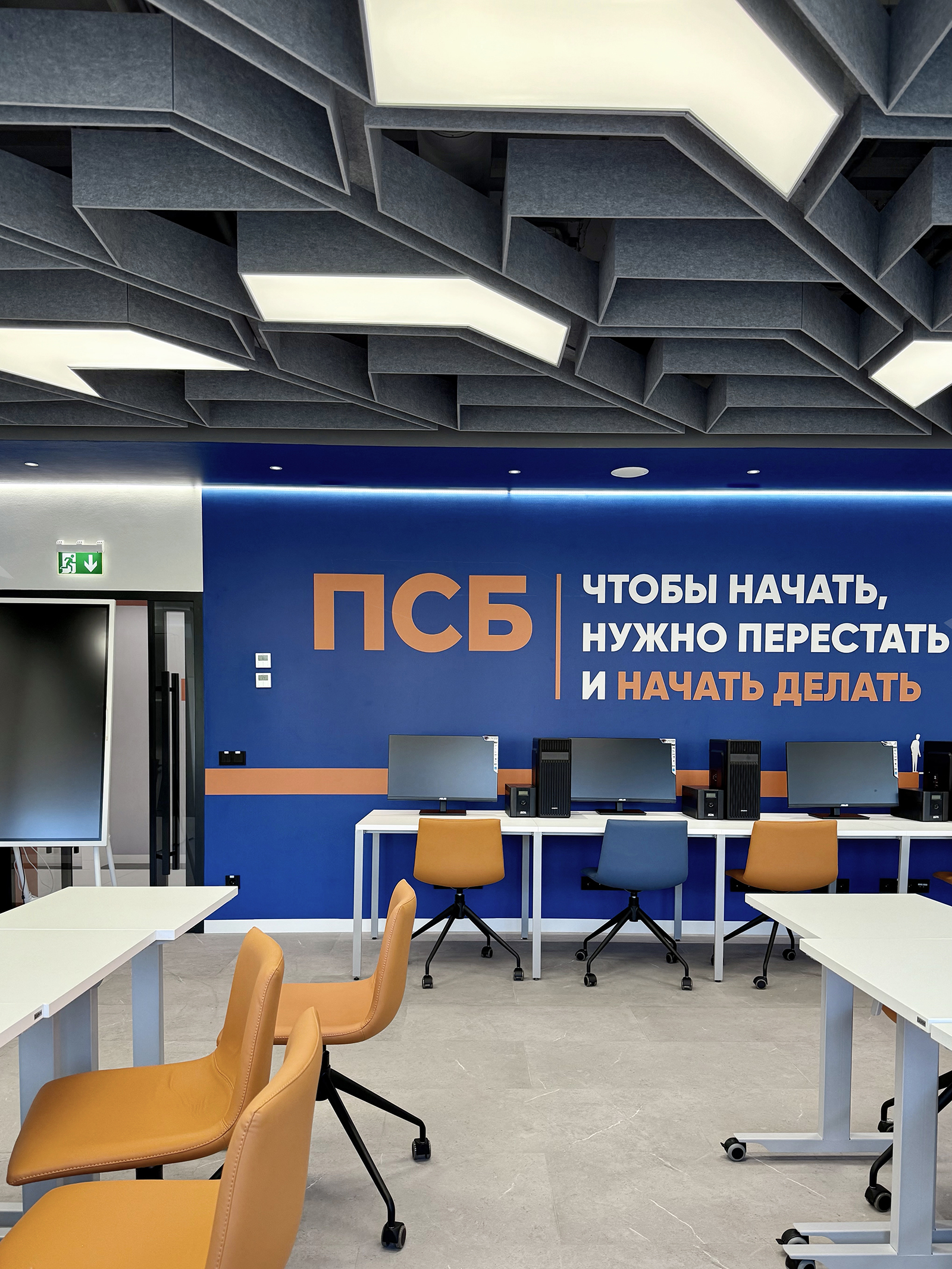 По проекту архитектурного бюро Т+Т Architects мы реализовали интерьер для кафедры ПСБ в Финансовом университете - современное образовательное пространство, сочетающее функциональность, комфорт и выразительный дизайн.