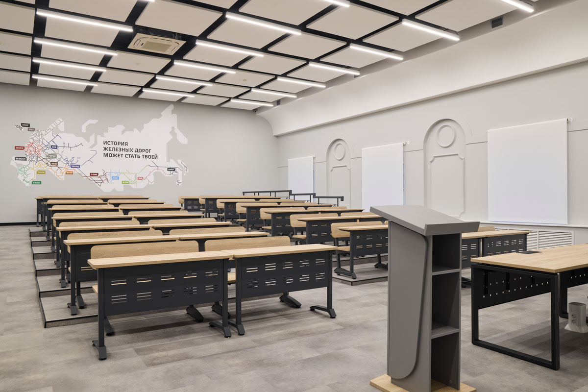 Проект обновления аудиторий Петербургского государственного университета путей сообщения (ПГУПС) направлен на создание удобной и современной образовательной среды, учитывающей потребности как студентов, так и преподавателей. Задача дизайнера состояла в том, чтобы в будущем пространстве все элементы были направлены на оптимизацию учебного процесса, и в то же время обеспечивали комфорт и удобство учащихся.