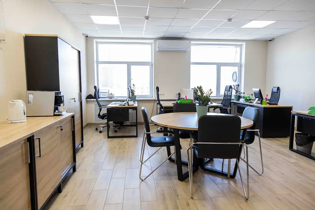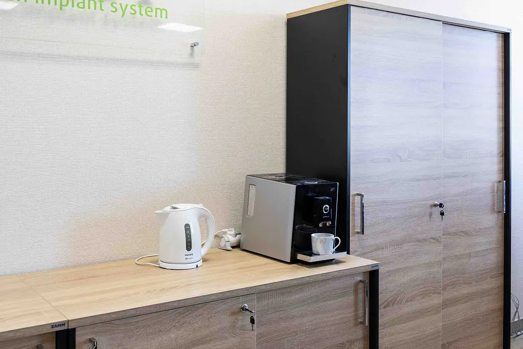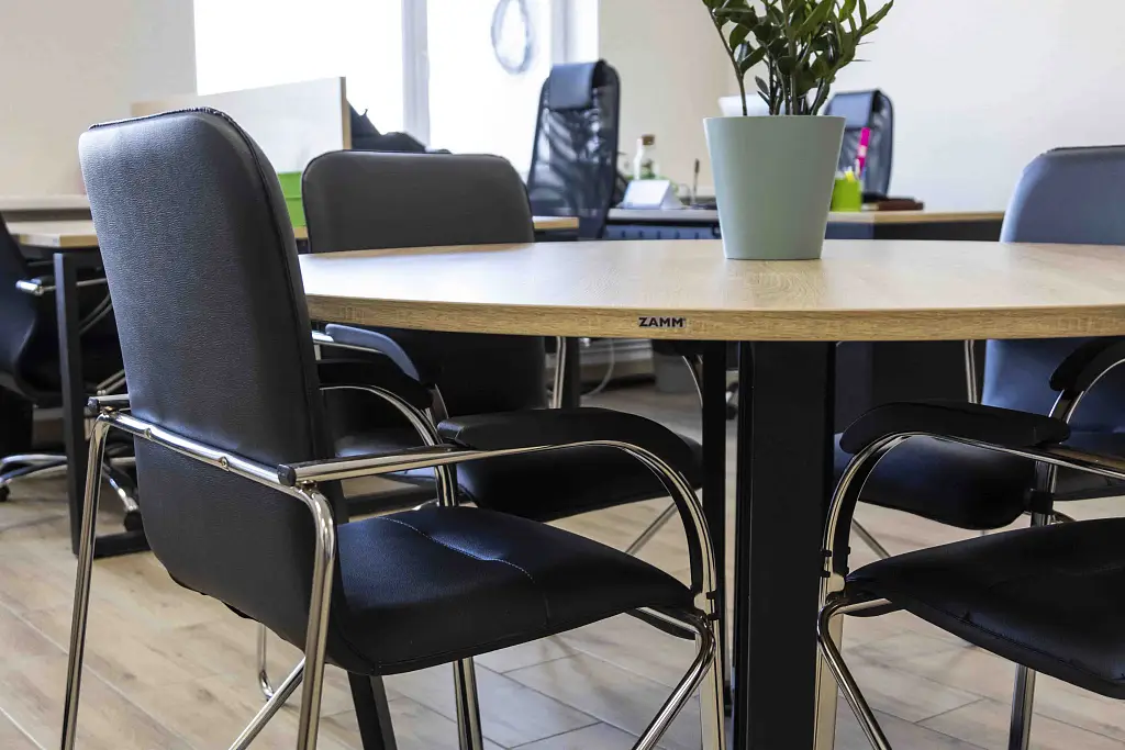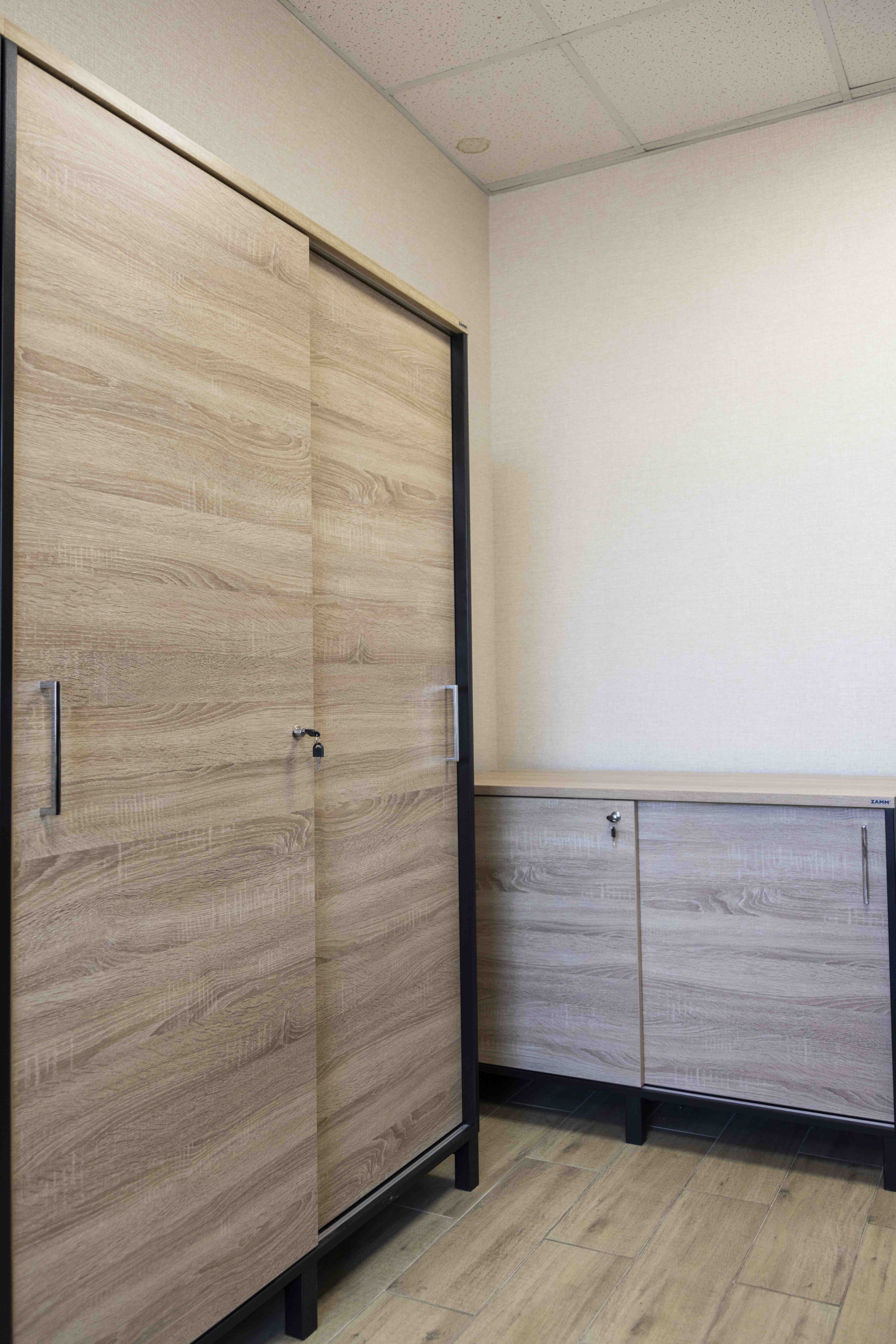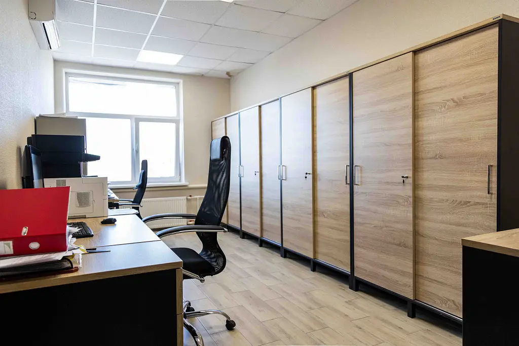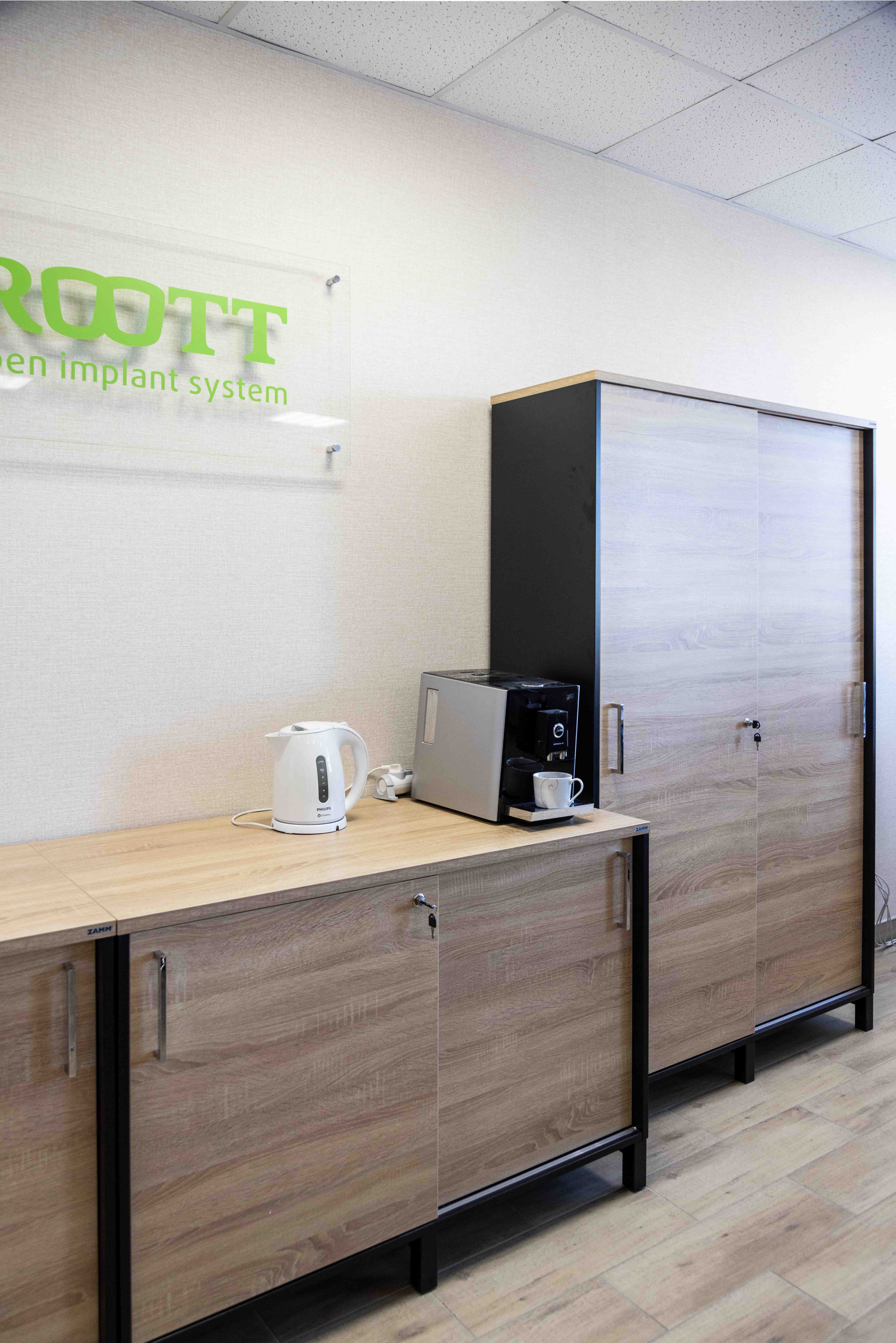 Классический проект для производителя зубных имплантов Трейт. В качестве стола переговоров выбран круглый Ирис, а для продуктивной работы сотрудников — бенч-системы Зета с двумя подвесными тумбами. Стеллажная система MIX, а также распашные шкафы и локеры на металлокаркасе рассчитаны на хранение большого количества вещей, одежды, документов и с этой задачей отлично справляются!