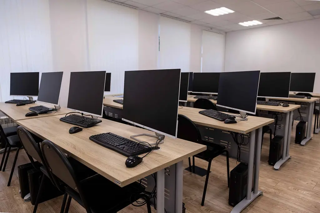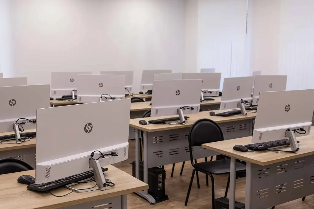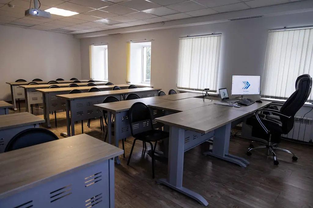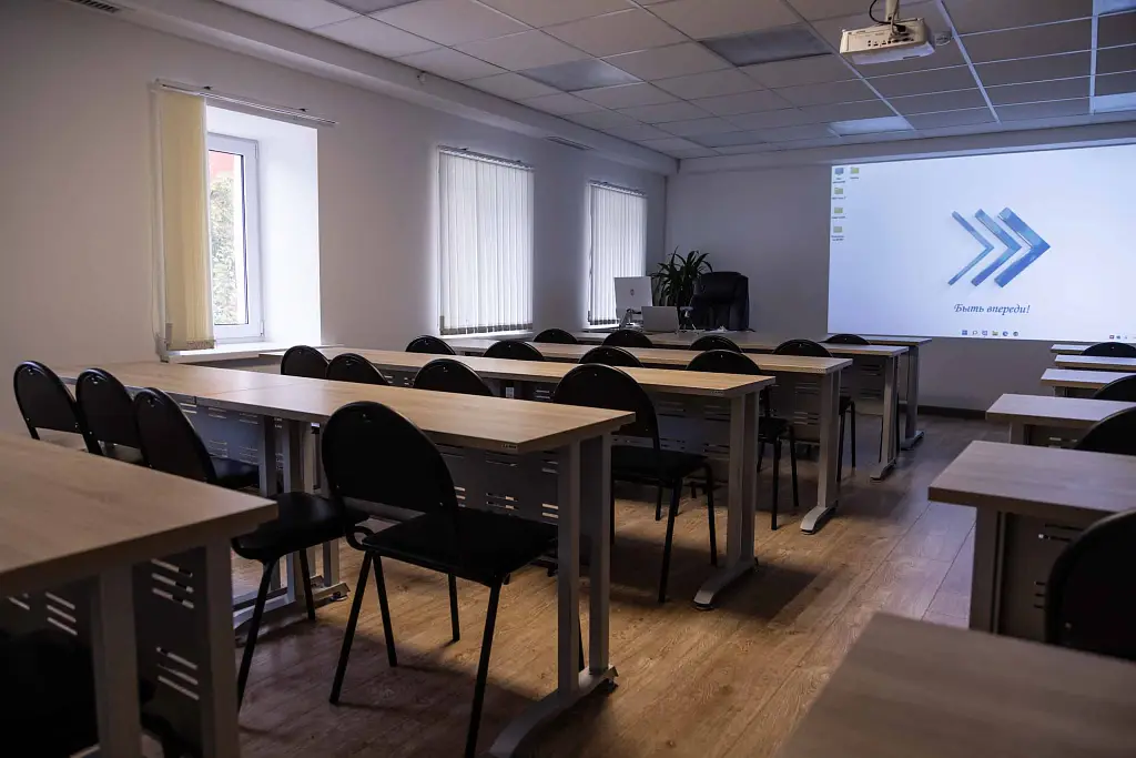 По словам представителя центра, интерьер гармонично выстроен и подходит под стилистику и обучение. Ничего лишнего, всё современно и стильно.