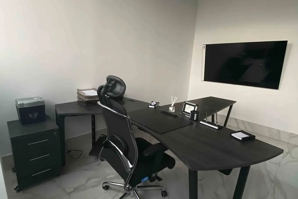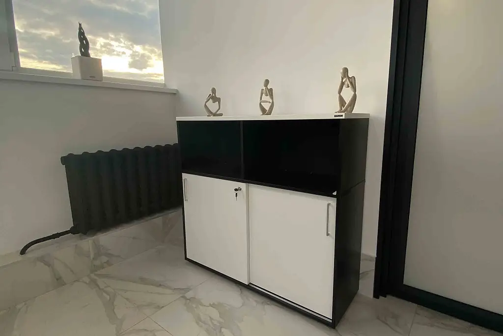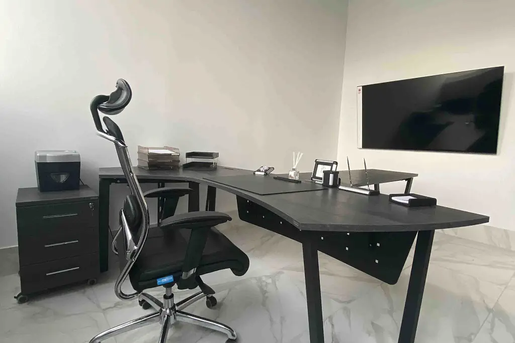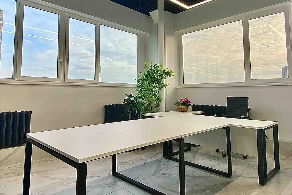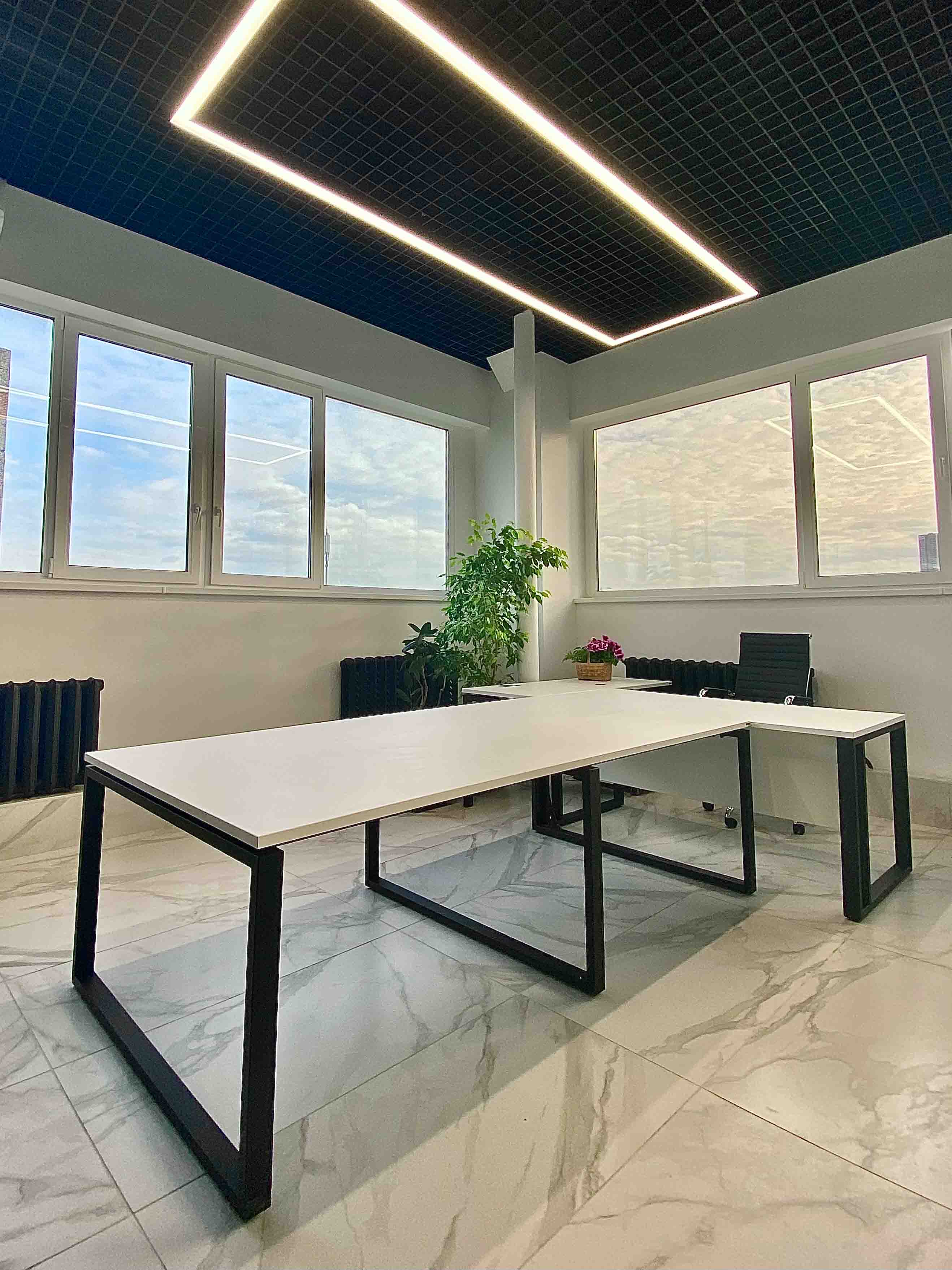 Минималистичный проект для офиса интернет-магазина вело и мототехники Велосити. В белом мраморном интерьере достойно выглядит корпусная мебель и столы в цвете Белый Премиум на черном металлокаркасе. Представлены модели Статус PRO с экраном ЛДСП, прямой стол для переговоров Зета и Пилот С. В кабинете руководителя размещен Гольф цвета ЛДСП Лес черный (на сайте не представлен, обращайтесь по телефону к нашим специалистам). В дополнение к столам идут локеры на две полки с надстройкой и стеллажные системы MIX.